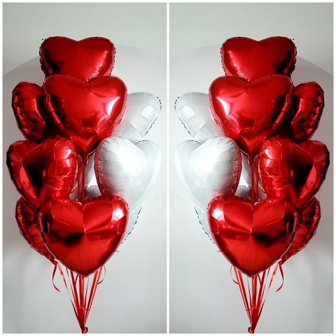 Фонтан из красных и белых сердец 45 см на атласных лентах
