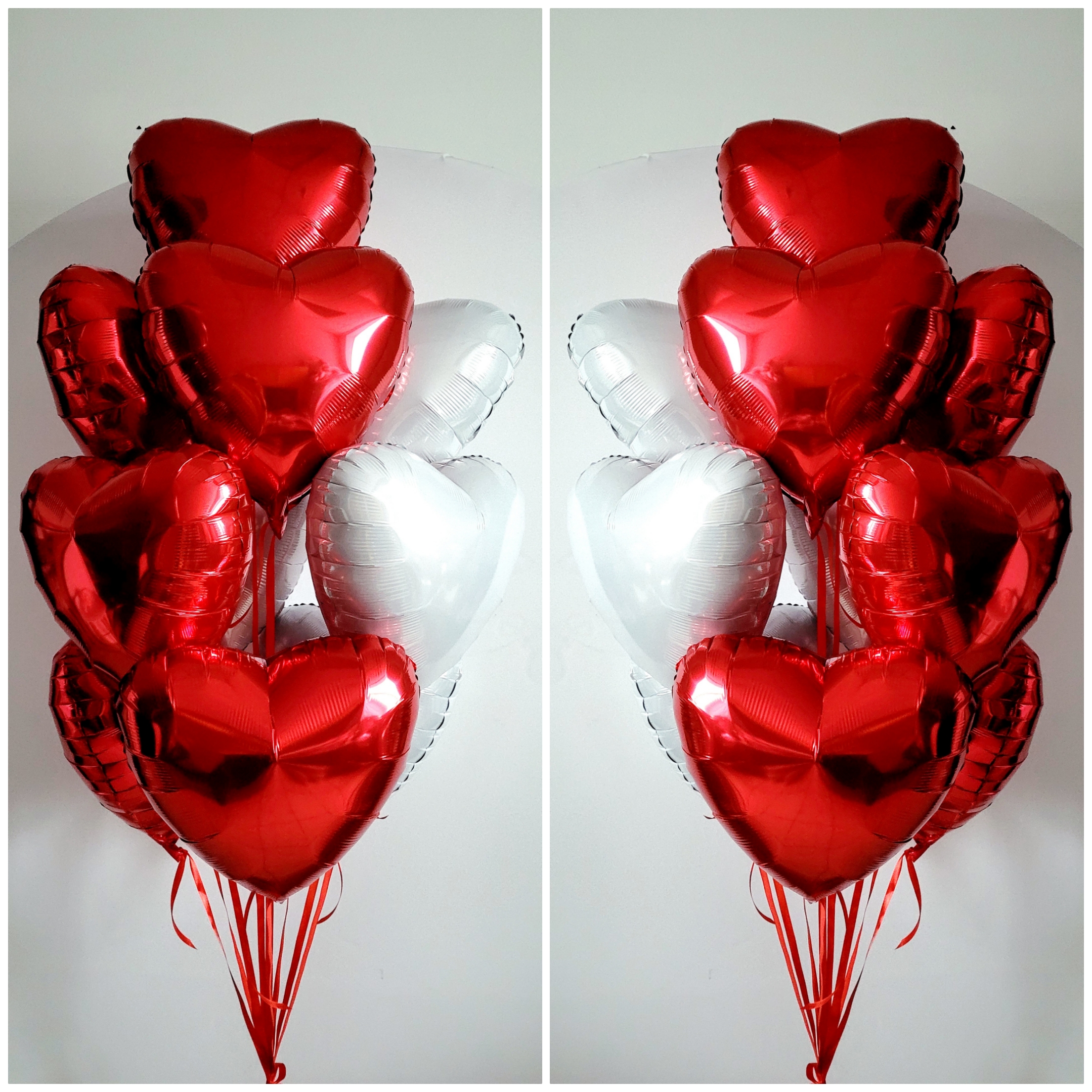 Фонтан из красных и белых сердец 45 см на атласных лентах