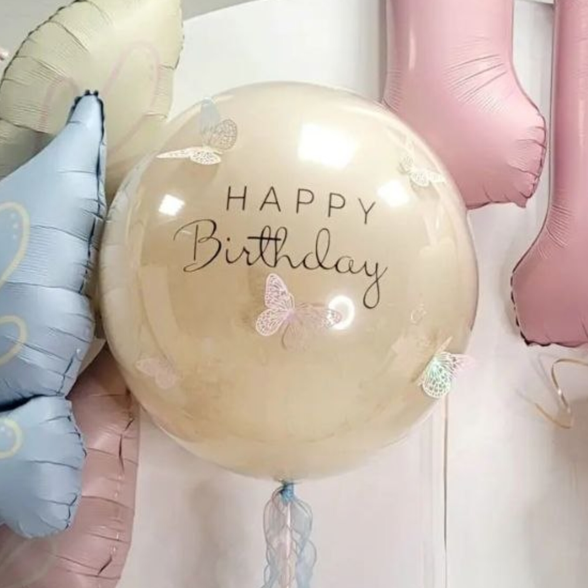 Голографические нежные бабочки, размеры от 8 до 12 см. Бабочки подчеркнут лёгкость воздушных шаров и сделают композицию более эффектной.