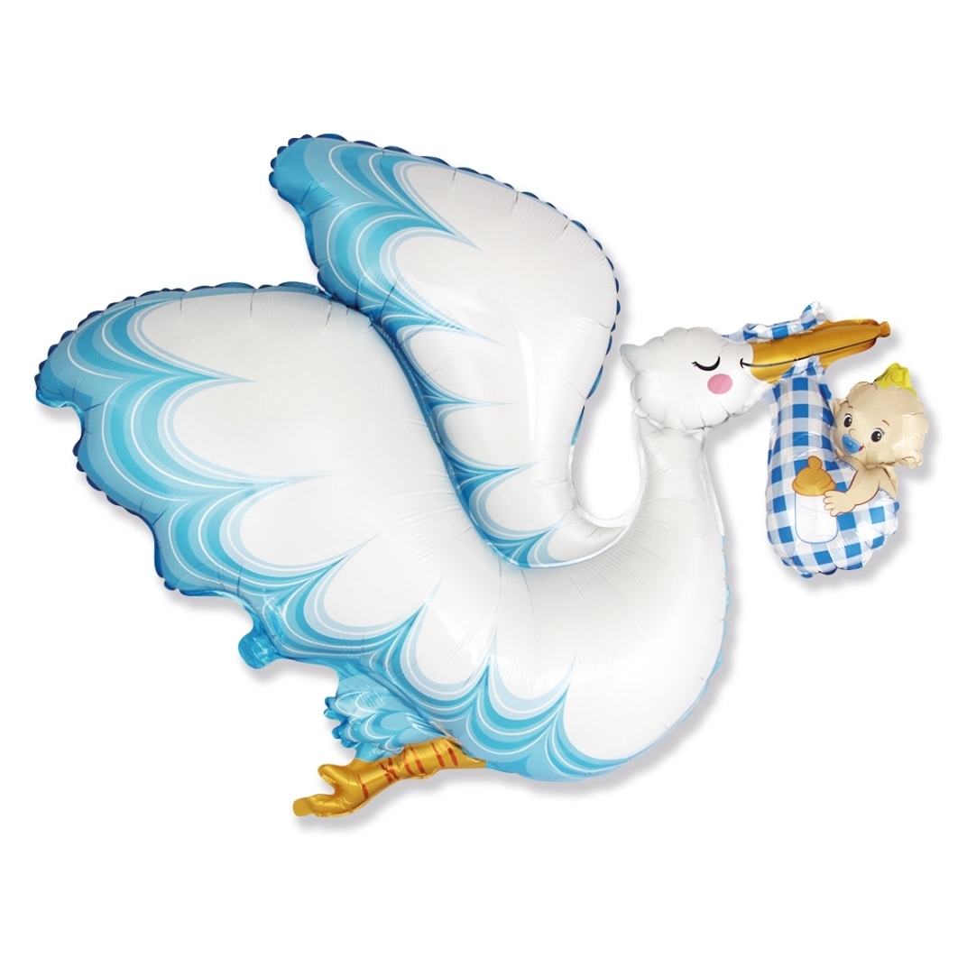 Фольгированный воздушный Шар-фигура "Аист с малышом мальчиком", 114 см