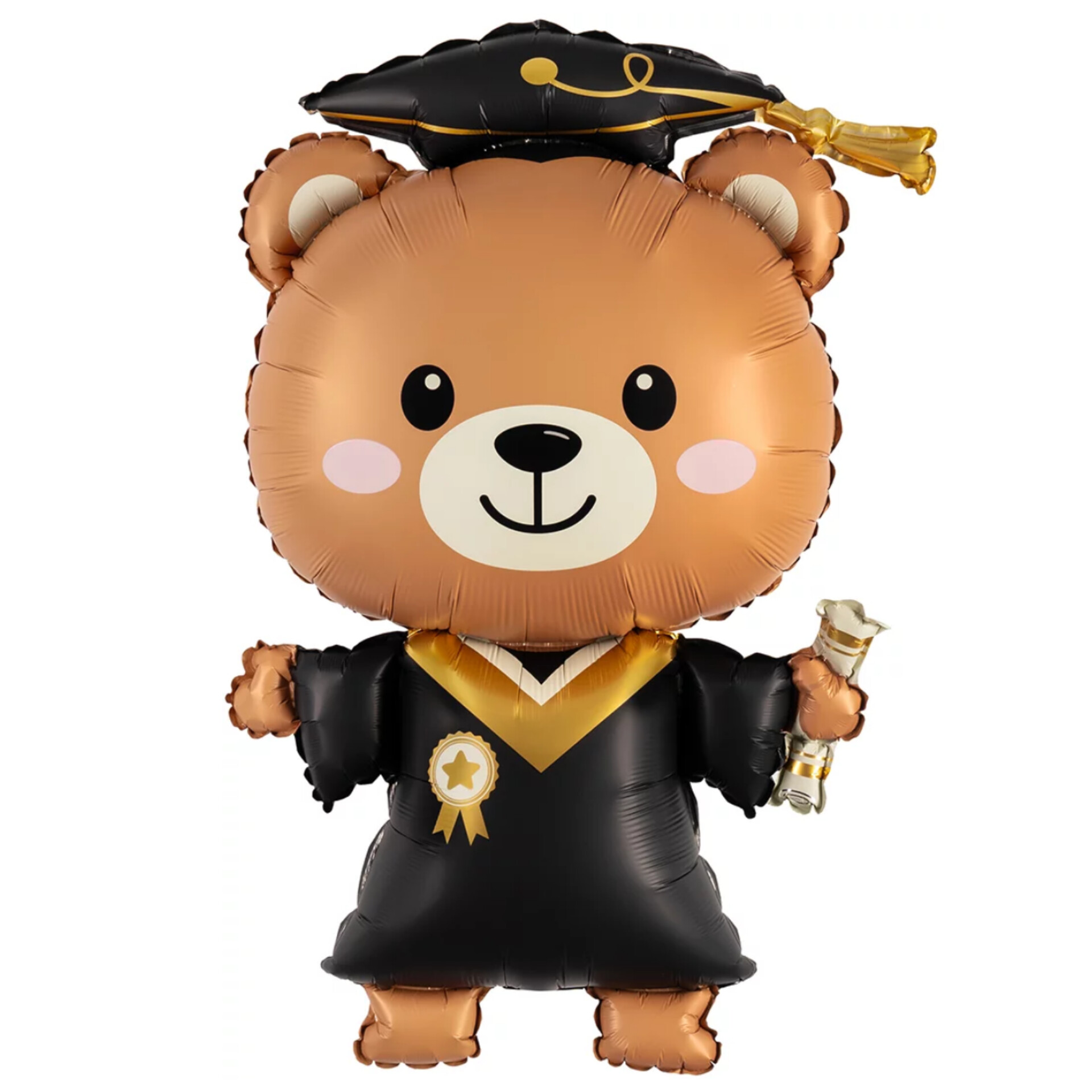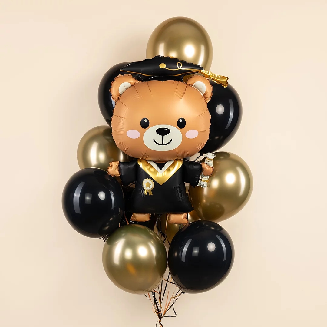 Фольгированный шар фигура, мишка выпускник, коричневый, черный