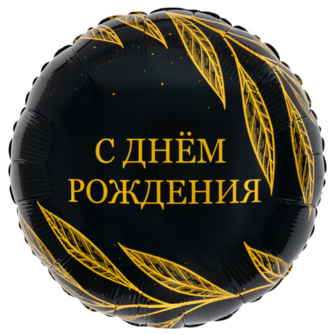Шар круг с рисунком, с днем рождения, поцелуи, черный, золотой
