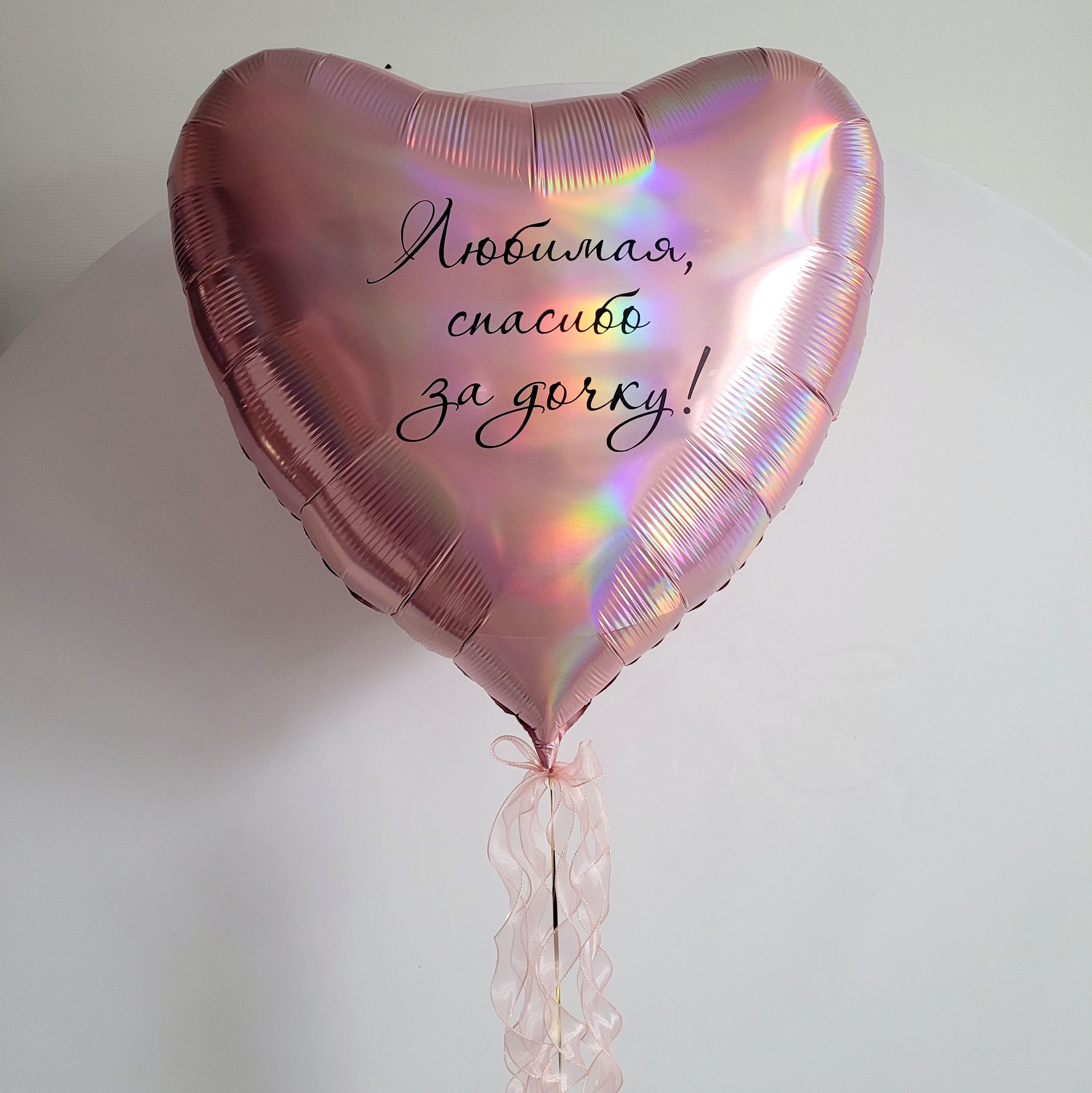 Шар - сердце большое розовое золото, голография, с надписью, 91 см
