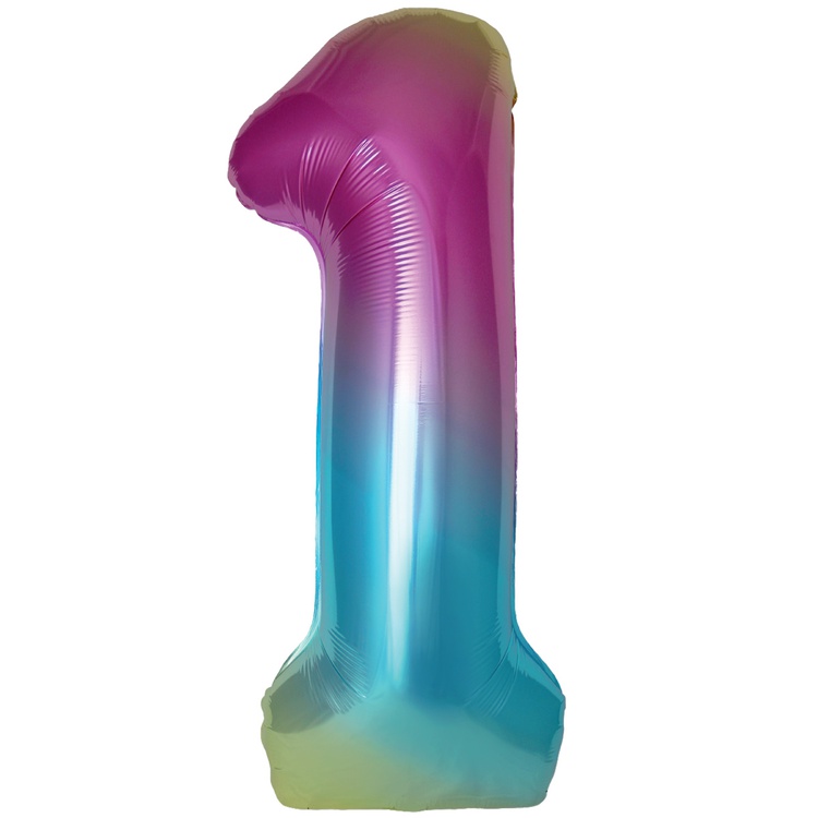 Фольгированный воздушный шар Цифра слим с гелием, цвет радуга разноцветная, 102 см