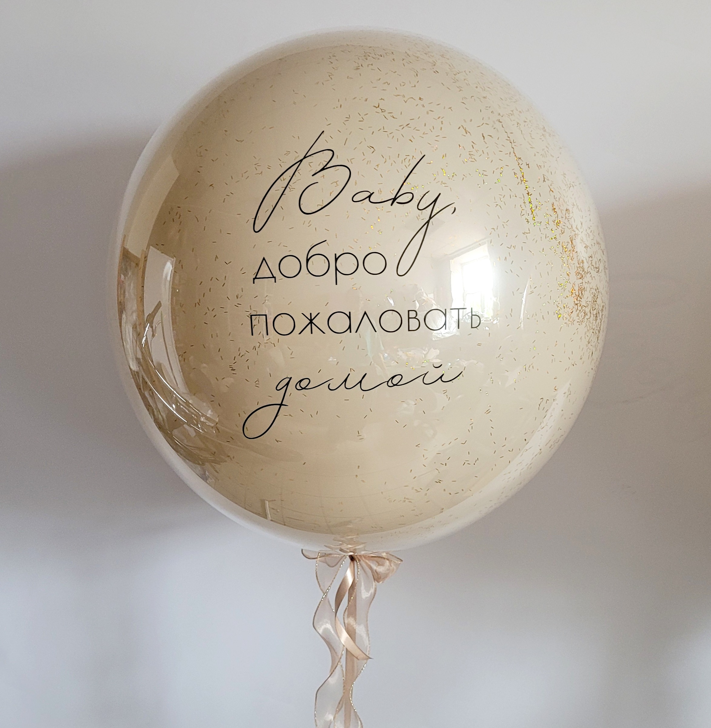 Воздушный шар гигант зеркальный бежевый с конфетти "Добро пожаловать домой"