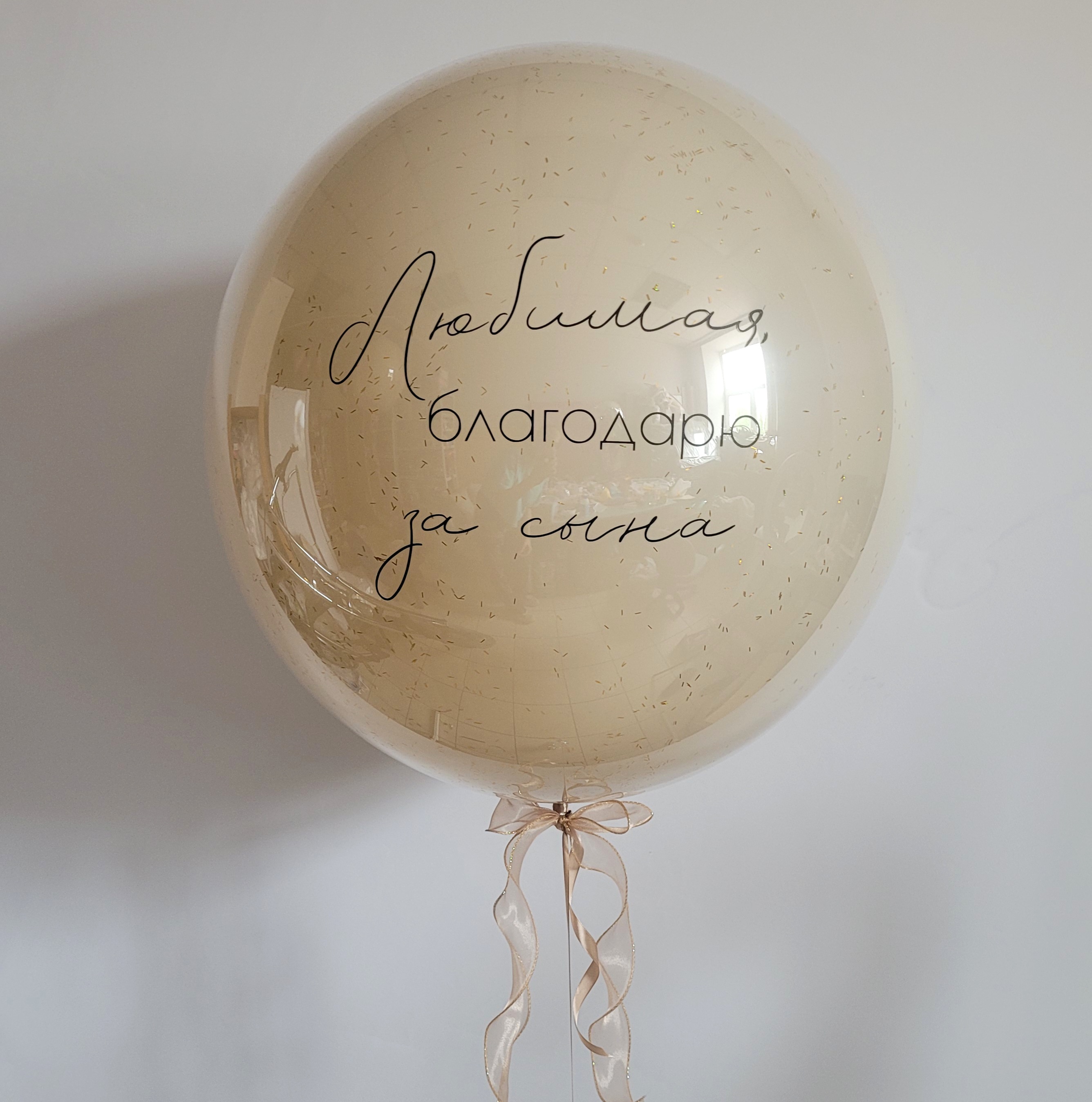Воздушный шар гигант зеркальный бежевый с конфетти "Любимая, благодарю за сына"
