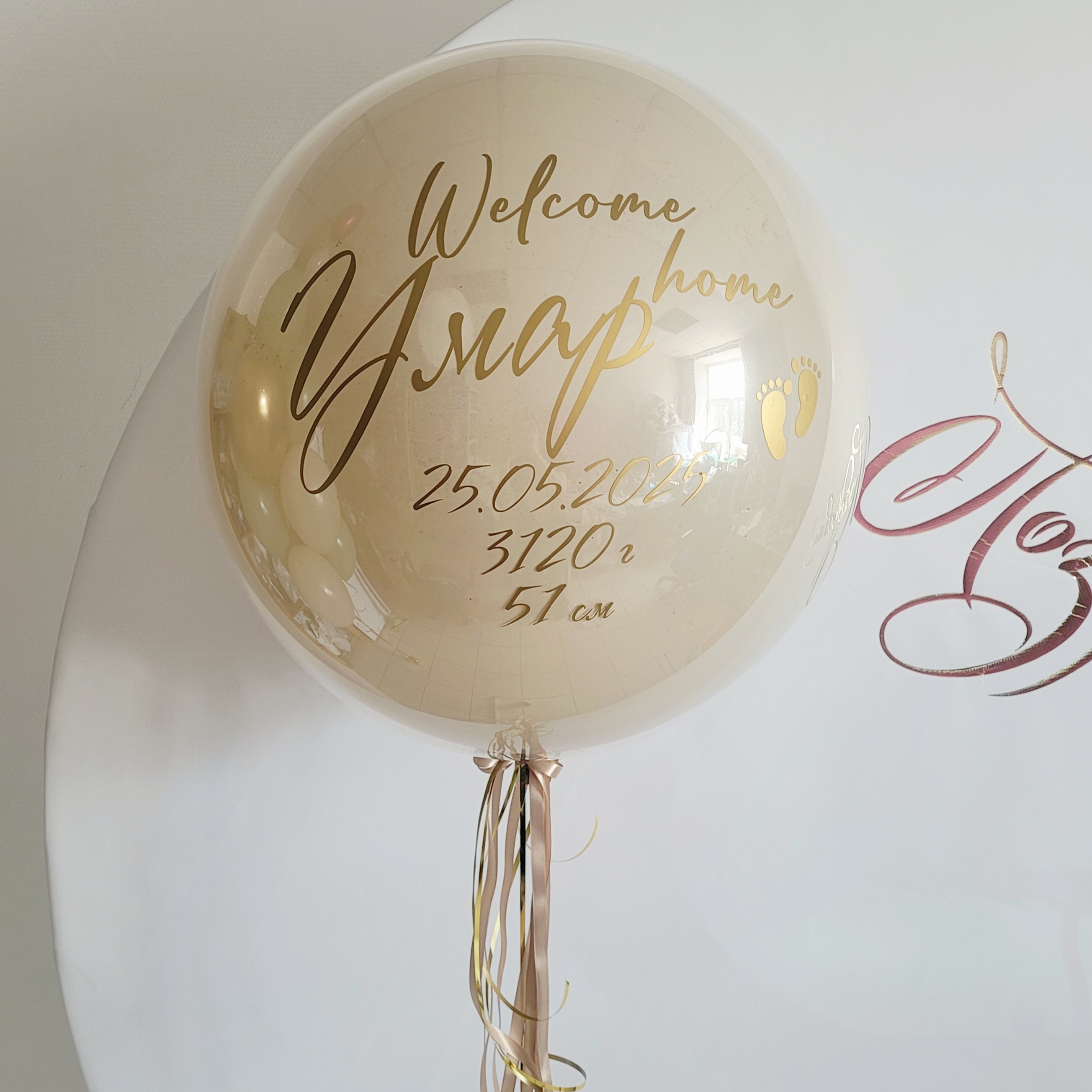 Воздушный шар гигант зеркальный бежевый с конфетти "На выписку1"
